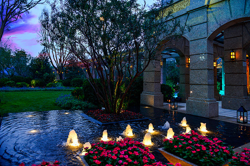 假山、瀑布、水系、庭院、连廊、植被、花木与9栋住宅楼融为一体,并通过首创城市私家宫园的理念,彰显龙生九子,风生水起,唯我独尊的磅礴气势和雍景礼序的内在韵律。